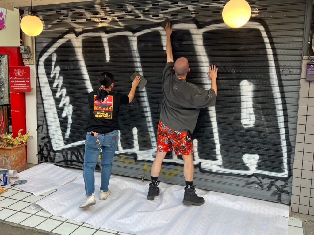 ชายต่างชาติมือพ่นสี‼️…ไหว้ขอโทษเจ้าของเจ้า ร้าน ก่อนขอลบสีและทำความสะอาด หลังถูกพิพากษาปรับและโทษจำคุกรอลงอาญา 1 ปี