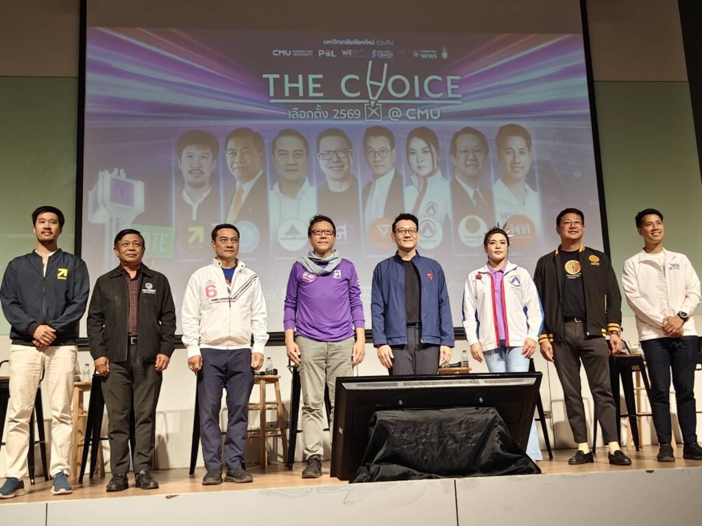 มหาวิทยาลัยเชียงใหม่ จัดเวทีเสวนาทางการเมือง “The Choice เลือกตั้ง 2569 @CMU” เวทีเรียนรู้ประชาธิปไตย เปิดพื้นที่กลางให้ผู้แทนพรรคการเมืองแลกเปลี่ยนนโยบาย ตอบคำถามตรงประเด็น และสะท้อนวิสัยทัศน์ต่ออนาคตประเทศ ท่ามกลางบรรยากาศการเลือกตั้งที่กำลังจะมาถึง เวทีดังกล่าวรวบรวม 5 แคนดิเดตนายกรัฐมนตรี และ 3 ผู้แทนพรรคการเมือง รวม 8 พรรค เข้าร่วมพูดคุยกับนักศึกษา บุคลากร และประชาชน โดยเน้นการสื่อสารอย่างตรงไปตรงมา เปิดโอกาสให้ผู้เข้าร่วมตั้งคำถามและรับฟังมุมมองเชิงนโยบายอย่างรอบด้าน เพื่อเสริมสร้างความเข้าใจทางการเมืองและการมีส่วนร่วมอย่างสร้างสรรค์ของสังคม