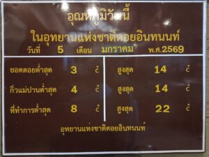อุณหภูมิต่ำสุด: 3°C (บริเวณยอดดอย)