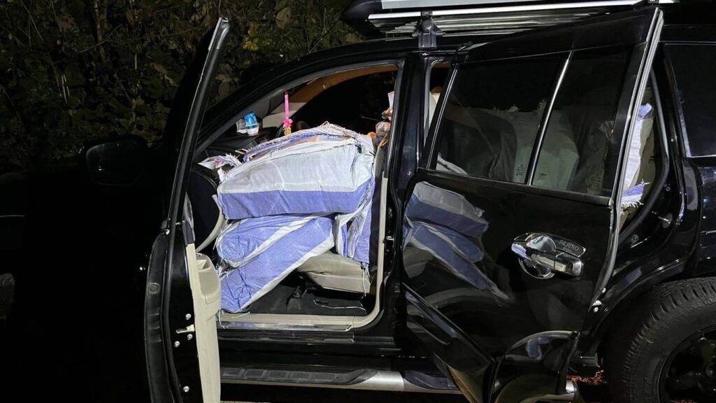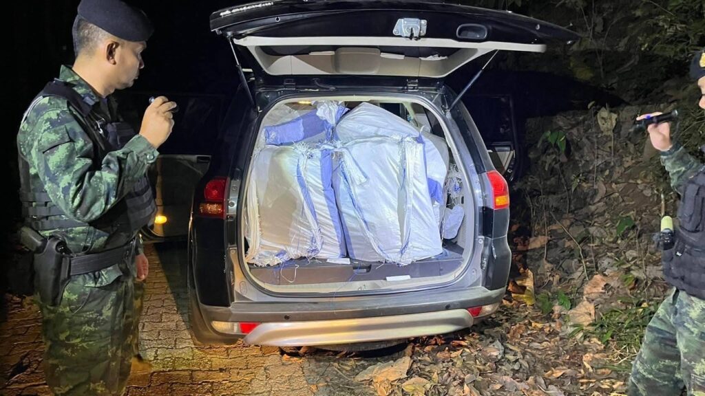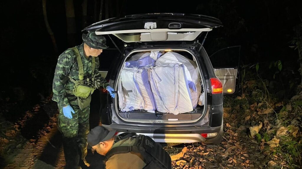 จากการตรวจสอบภายในรถอย่างละเอียด เจ้าหน้าที่ตะลึงพบเป้กระสอบสีฟ้า-ขาว อัดแน่นอยู่ถึง 24 กระสอบ ภายในบรรจุยาเสพติดให้โทษประเภท 1 (ไอซ์) รวมน้ำหนักประมาณ 600 กิโลกรัม นอกจากนี้ยังพบหลักฐานสำคัญเป็นบัตรประจำตัวประชาชนระบุชื่อ นายณัฐวุธ ทนันไชยชมภู ชาวจังหวัดลำปาง ตกอยู่ในที่เกิดเหตุ ล่าสุดหน่วยได้จัดกำลังพลเพิ่มเติมอีก 2 ชุดปฏิบัติการ เข้าควบคุมพื้นที่และเร่งขยายผลติดตามตัวผู้กระทำผิดมาดำเนินคดีตามกฎหมายต่อไป.