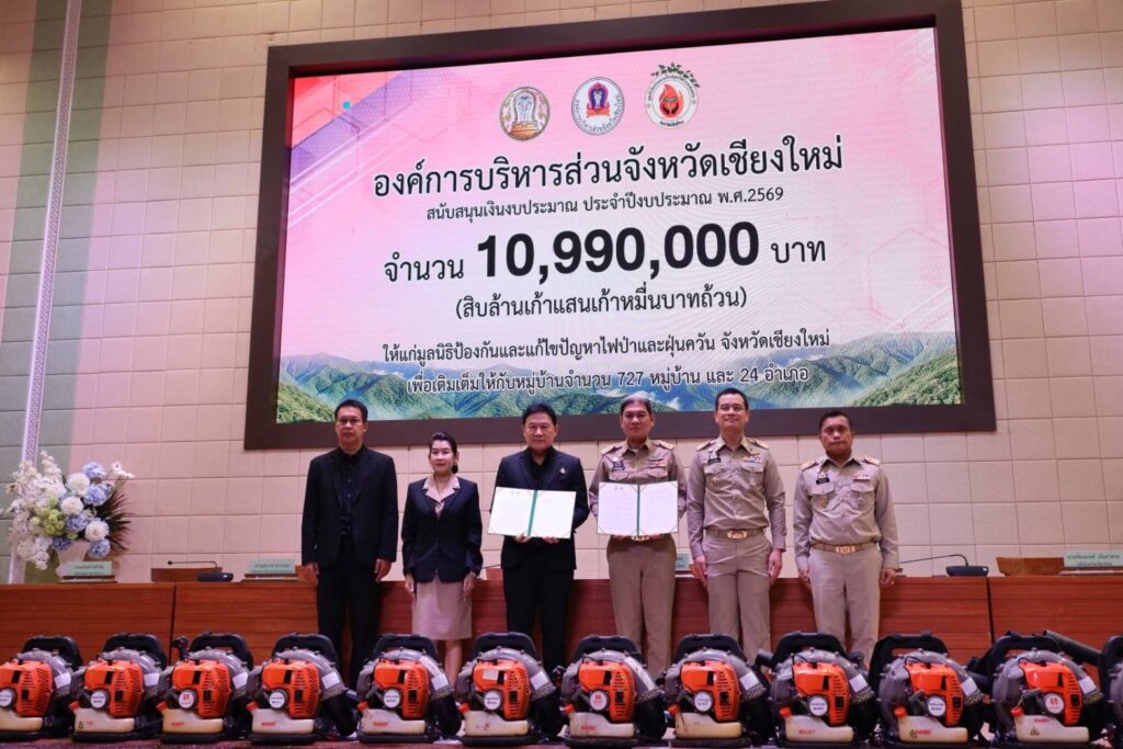 อบจ.เชียงใหม่ มอบเงินกว่า 10 ล้าน หนุนมูลนิธิไฟป่าฯ แก้ปัญหา PM 2.5