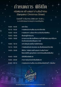 Chiang Mai Municipality, together with The Working Committee for the Development of the Creative District of Sanpakoi–Wat Ket, proudly presents “Sanpakoi Christmas Street 2025”—a vibrant and heartwarming Christmas street festival designed to celebrate community spirit, creativity, and local heritage.
