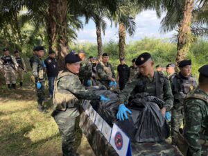 ต่อมา หน่วยได้เข้าตรวจสอบพื้นที่เกิดเหตุ ตรวจพบกระสอบฟางห่อหุ้มด้วยถุงพลาสติกสีดำ จำนวน 5 กระสอบ ตรวจสอบภายในกระสอบพบว่า เป็นยาเสพติดให้โทษประเภท 1 (ยาบ้า) จำนวน 5 กระสอบๆ ละ 100,000 เม็ด รวมยาบ้าประมาณ 500,000 เม็ด