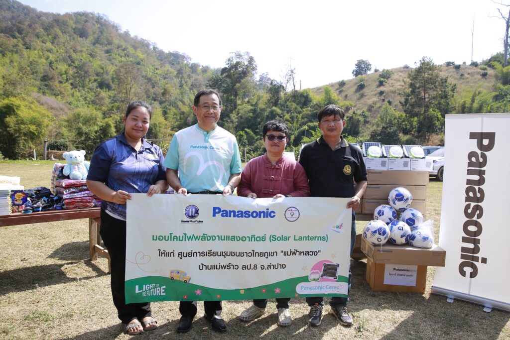 กลุ่มบริษัทพานาโซนิคในประเทศไทย ร่วมกับพานาโซนิค โฮลดิ้งส์ คอร์ปอเรชั่น ประเทศญี่ปุ่น ผนึกกำลังพันธมิตร นิยมพานิชลำปาง และ เล่าจิ้นกวงเร่งเครื่องเติมแสงสว่างให้ชุมชมห่างไกลในกิจกรรมLIGHT UP THE FUTURE” ปี 2026 ลงพื้นที่ส่งมอบโคมไฟพลังงานแสงอาทิตย์   (Solar Lanterns) ให้แก่ศูนย์การเรียนรู้ชุมชนชาวไทยภูเขา “แม่ฟ้าหลวง” บ้านแม่พร้าว ลป.8 จังหวัดลำปาง เพื่อช่วยเหลือให้เยาวชนมีแสงสว่างใช้ทำกิจกรรมยามค่ำคืนได้อย่างปลอดภัยมากยิ่งขึ้น