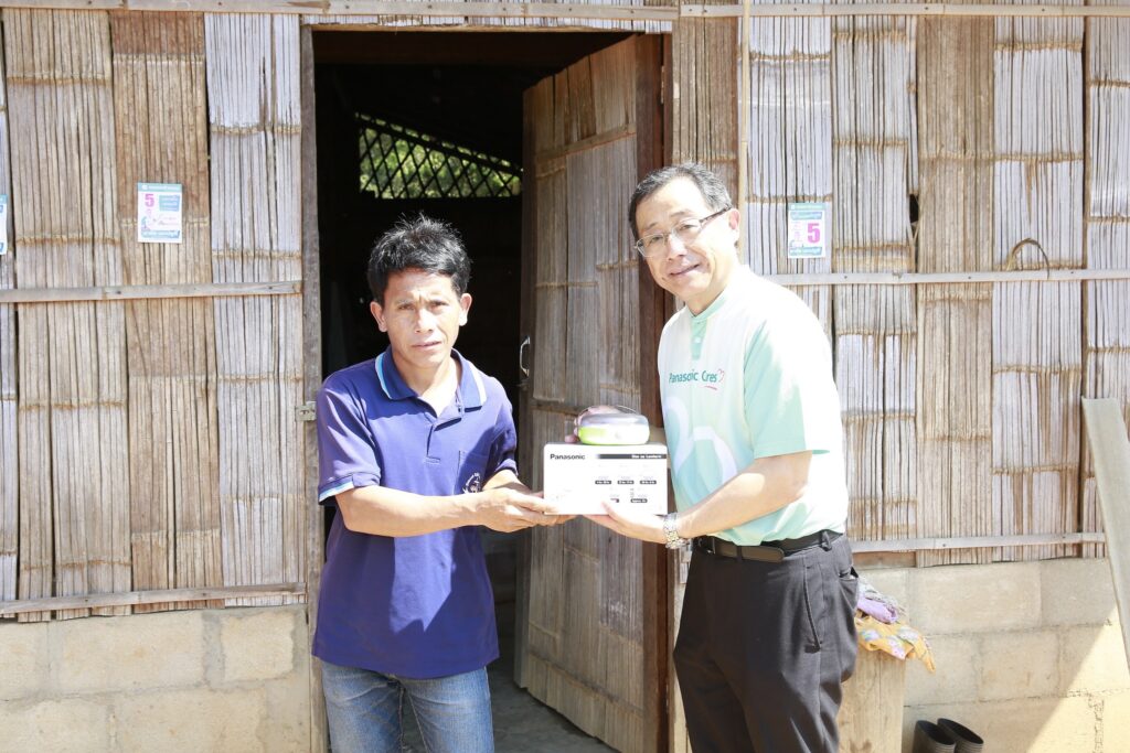 มร.ฮิเดคาสึ อิโตะ ซีอีโอ กลุ่มบริษัทพานาโซนิคในประเทศไทย กล่าวว่า พานาโซนิคยังคงมุ่งมั่นยกระดับสุขภาพ ความปลอดภัย และคุณภาพชีวิตของผู้คนอย่างยั่งยืน ตามแนวทางของพานาโซนิค             โฮลดิ้ง คอร์ปอเรชั่น ประเทศญี่ปุ่น ที่ขับเคลื่อนโครงการ LIGHT UP THE FUTURE อย่างต่อเนื่อง เพื่อช่วยให้ชุมชนที่ยังไม่มีไฟฟ้าใช้กว่า 700 ล้านคน ในหลายประเทศทั่วโลกได้เข้าถึงแสงสว่างที่ปลอดภัย ซึ่งในประเทศไทย พานาโซนิค ได้สานต่อโครงการดังกล่าวด้วยการส่งมอบโคมไฟพลังงานแสงอาทิตย์ ไปแล้ว มากกว่า 500 ชุด ให้แก่ชุมชนในหลายพื้นที่ ได้แก่ อำเภอสังคม จังหวัดหนองคาย, อำเภอยะหาอำเภอกาบัง จังหวัดยะลา, อำเภออมก๋อย อำเภอแม่แตง จังหวัดเชียงใหม่ และ อำเภอแม่สรวย จังหวัดเชียงรายพร้อมทั้งได้ติดตามผลพบว่าโคมไฟพลังงานแสงอาทิตย์สามารถช่วยให้ประชาชนในพื้นที่ได้ใช้ชีวิตประจำวันยามค่ำคืนอย่างปลอดภัย และช่วยให้เยาวชนได้อ่านหนังสือ ทำการบ้าน และทำกิจกรรมต่าง ๆ ได้สะดวกยิ่งขึ้น