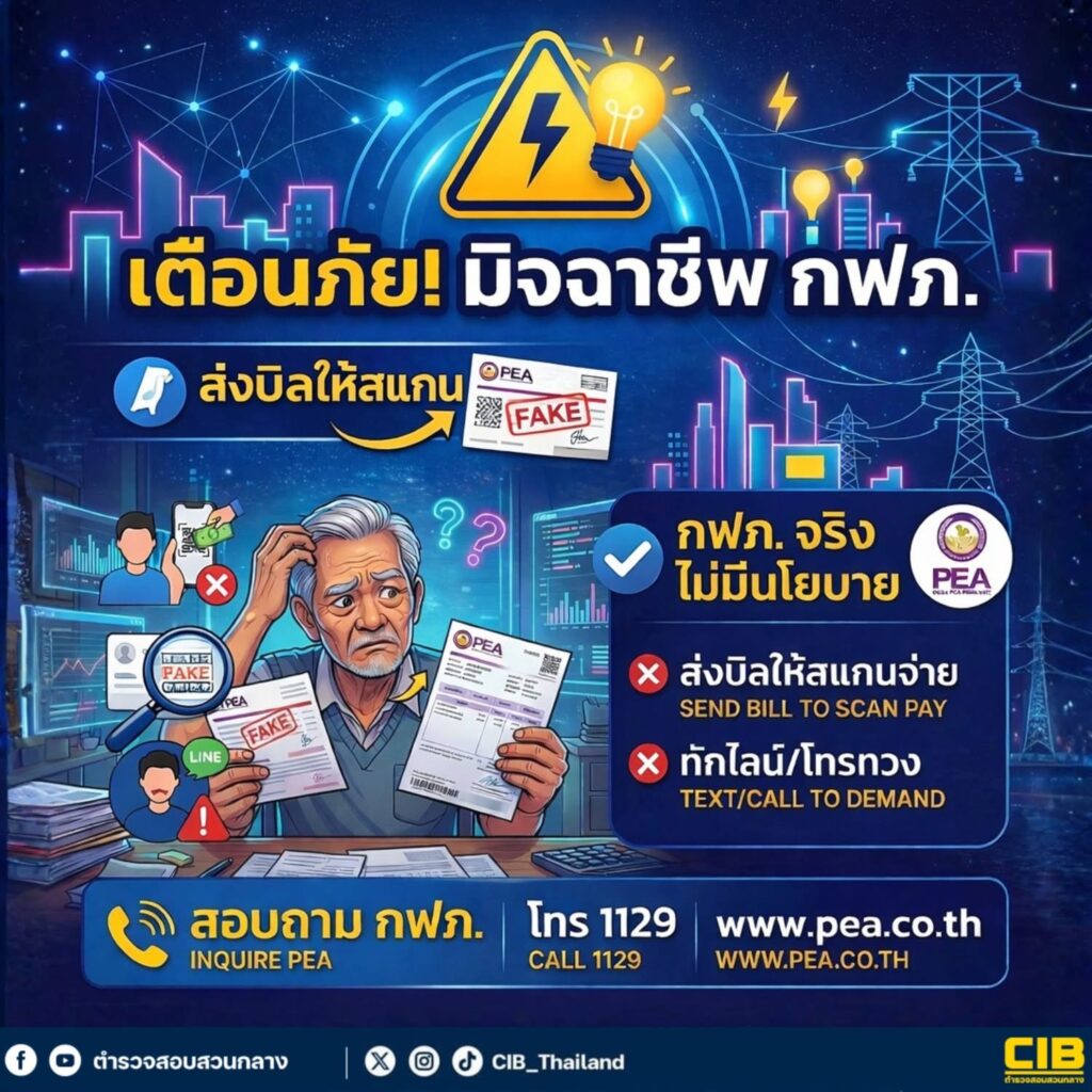 #เตือนภัย #บิลค่าไฟปลอม #มิจฉาชีพ #ตำรวจสอบสวนกลาง #CIB