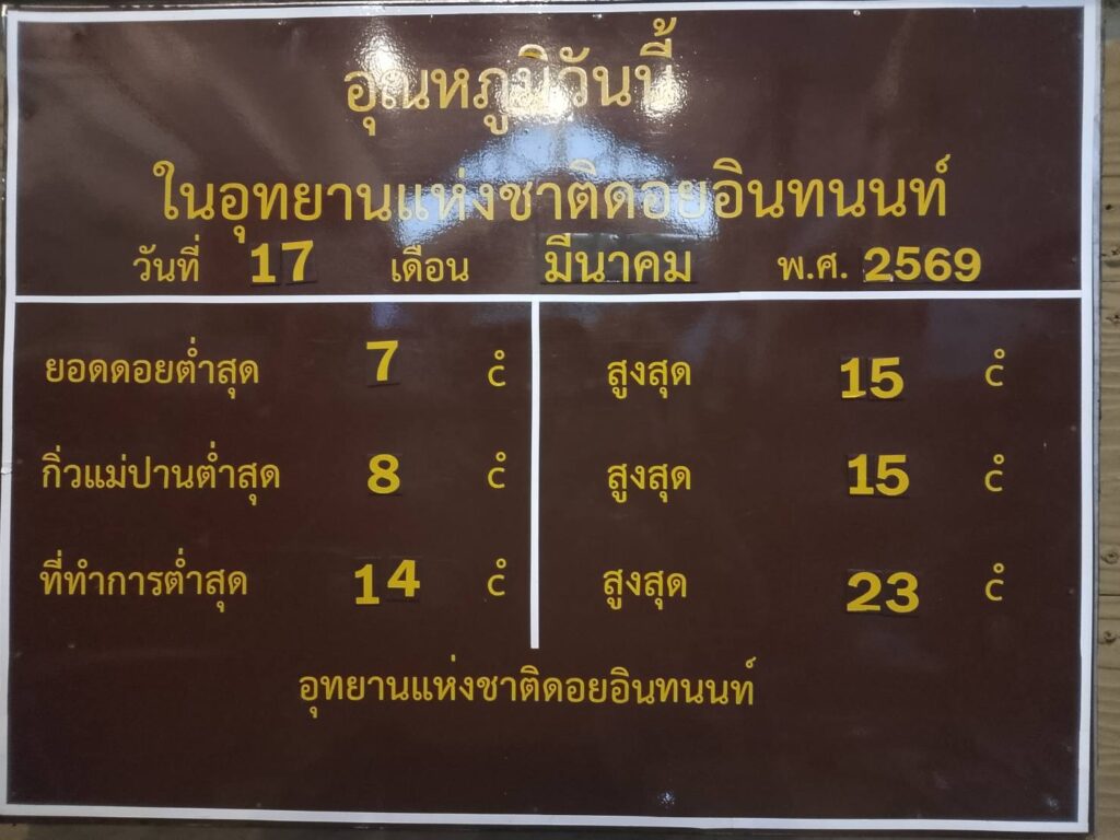 “ดอยอินทนนท์” บรรยากาศ เช้าวันที่ 17 มีนาคม 2569 เวลา 7.00 น. วันนี้ยอดดอยและกิ่วแม่ปานอากาศเปิดคุณภาพอากาศดีอุณหภูมิต่ำสุด ยอดดอย 7 c กิ่วแม่ปาน 8 c ที่ทำการ 14 c