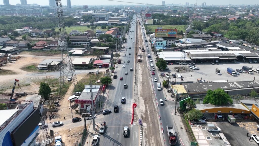 แจงยิบงานปรับปรุงผิวทางแยกเทพปัญญา-แยกรวมโชค จำเป็นต้องรื้อทำเป็นผิวคอนกรีต เพราะพื้นทางเดิมปรับปรุงยากใช้เวลาก่อสร้างนาน แบ่งงานเป็น 6 ช่วง ทำช่วงละ 30 วัน ทำเสร็จทีละช่วงเปิดใช้เลย คอนกรีตผิวทางใช้ชนิดพิเศษเซตตัวไว เพื่อให้งานไวขึ้นปรับแบบจากงานบดอัดพื้นทางเป็นเทรีนคอนกรีตแทน ก่อวางเหล็กเทคอนกรีตผิวทางหนา 25 ซม. ช่วงแรกจะจบก่อนสงกรานต์แล้วเป็นใช้ครบ 6 ช่องทาง คาดปิดจบเดือนสิงหาคมหรืออาจไวกว่านั้น ชี้ Overlay ทำให้ถนนสูง กระทบชาวบ้าน 2 ข้างทางและระบบระบายน้ำ