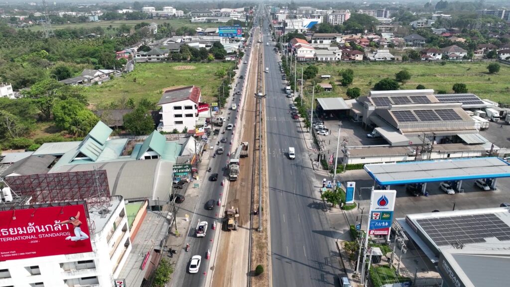 “เพื่อให้โครงการนี้ทำงานได้เร็วขึ้น เพราะมีความเป็นห่วงเรื่องระยะเวลาก่อสร้าง จึงมีการปรับแบบ ก็เพื่อให้ดำเนินการได้ไวขึ้น จึงปรับแบบมีการใช้การเทลีนคอนกรีตแทนการปรับปรุงพื้นผิวทางเดิมเนื่องจากต้องใช้เวลาในการรื้อและบดอัด ชั้นพื้นก็จะมีการการเทลีนคอนกรีตหนา 8 เซนติเมตร เสร็จแล้วพอรีนคอนกรีตเซ็ตตัว ก็จะทำผิวคอนกรีตไปเลย เพื่อลดระยะเวลาแล้วก็เพิ่มความแข็งแรง ซึ่งคอนกรีตผิวทางตลอดทั้งเส้นนี้ หนา 25 เซนติเมตร” นายสิทธาฤทธิ์ฯ กล่าว