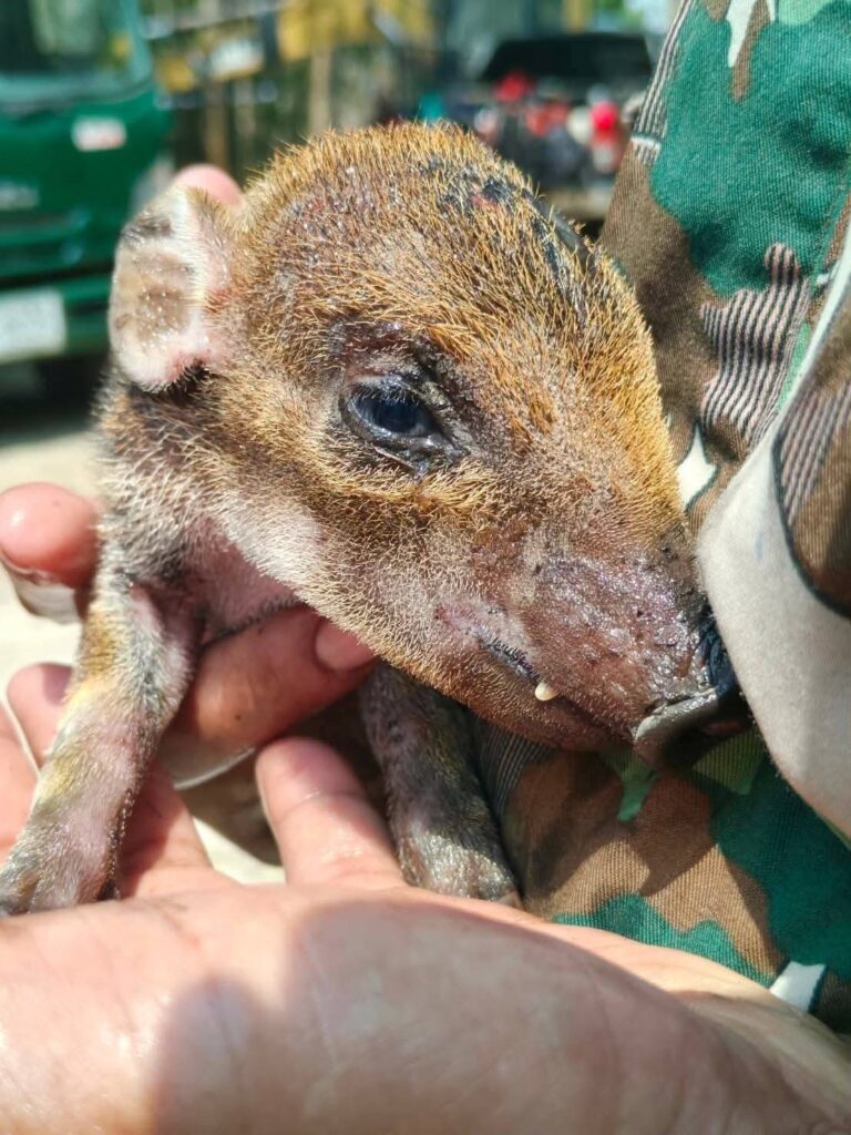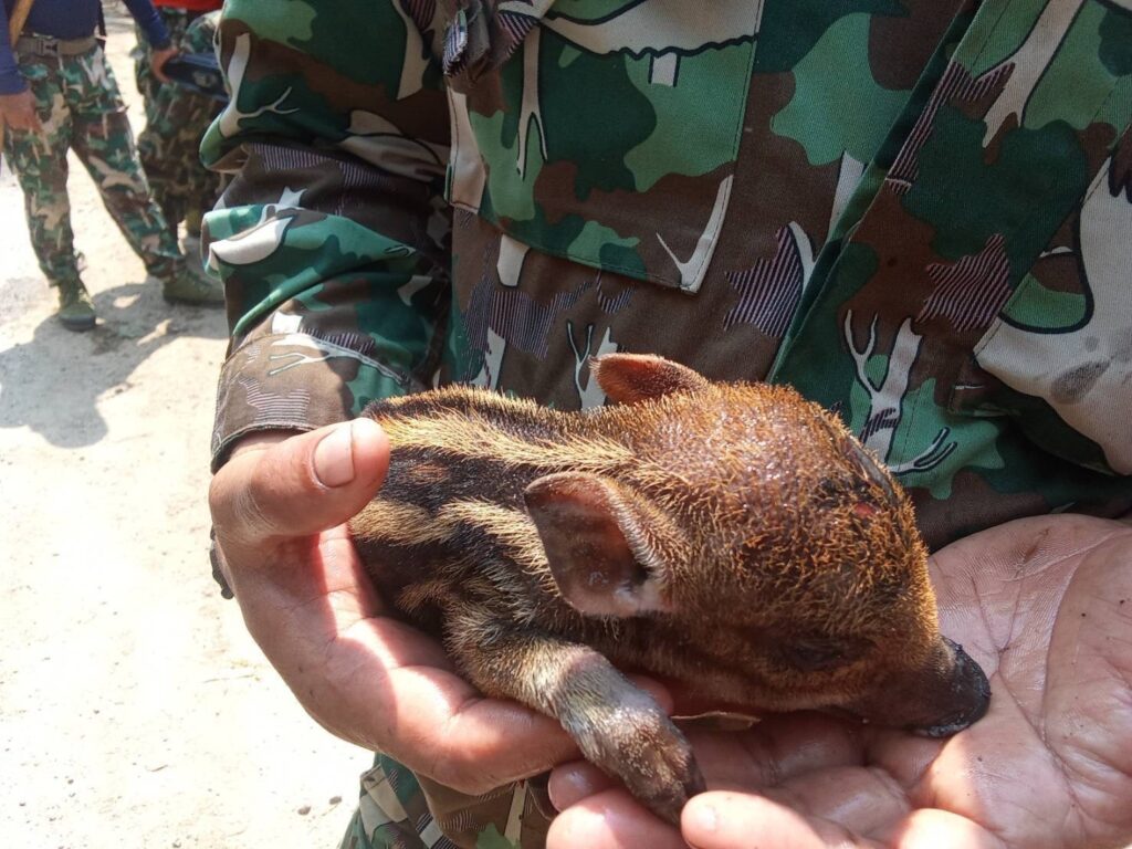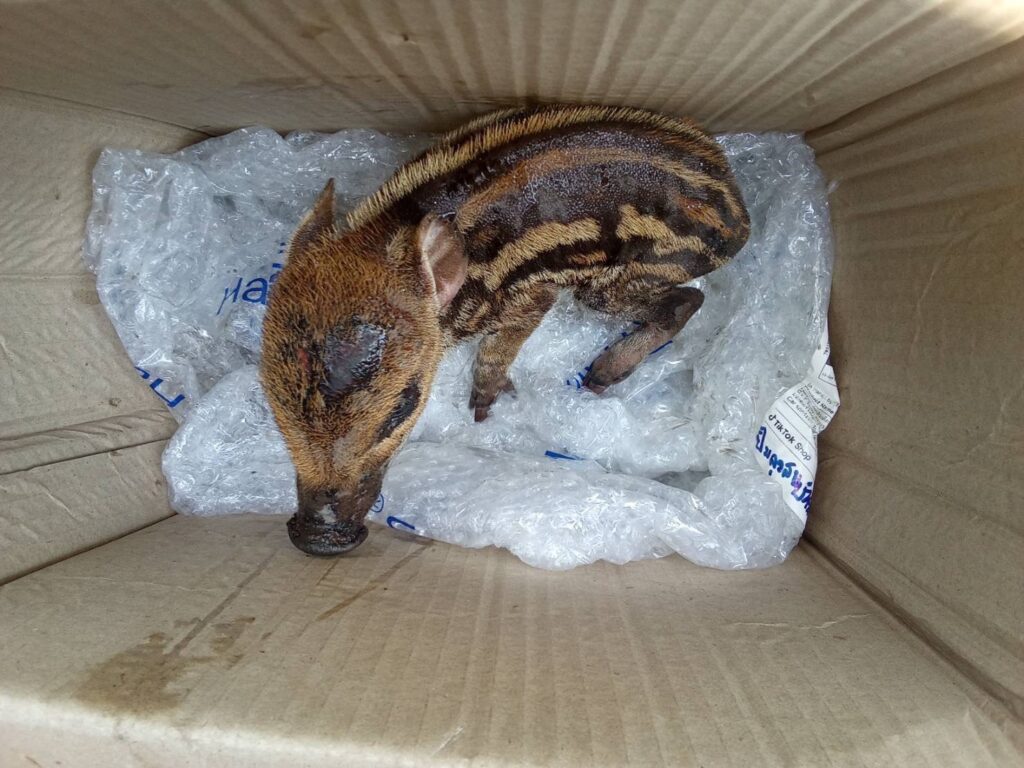 “น้องบุญรอด” ลูกหมูป่าหนีไฟ พลัดหลงจากแม่ ชาวบ้านช่วยชีวิต ส่งเจ้าหน้าที่ดูแลเร่งรักษา