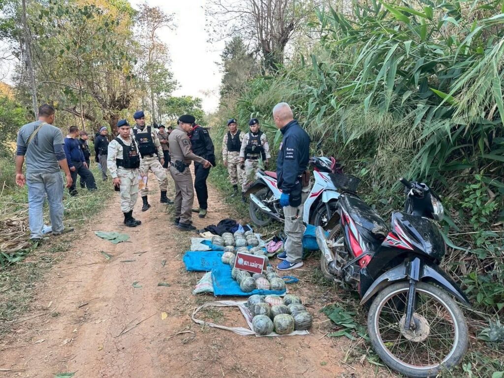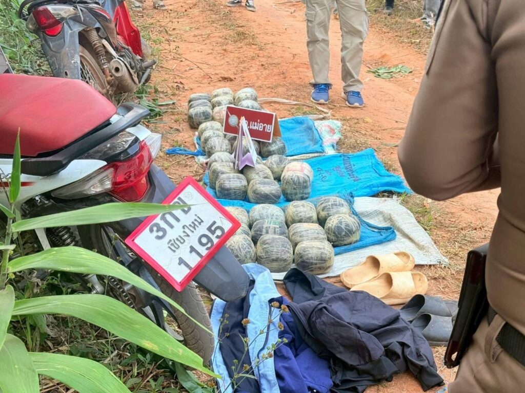 สองหนุ่มซิ่ง จยย. ฝ่าด่านแม่อาย ทิ้งฝิ่นดิบกว่า 60 กิโลกรัมก่อนอาศัยความมืดหลบหนี
