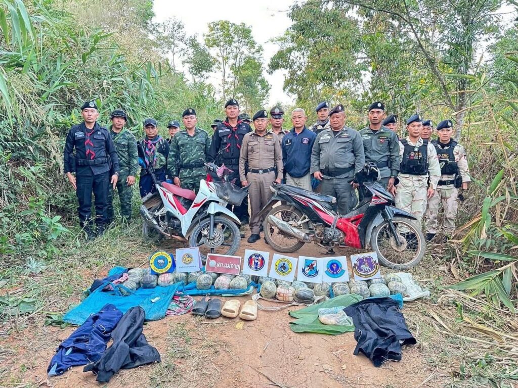 สองหนุ่มซิ่ง จยย. ฝ่าด่านแม่อาย ทิ้งฝิ่นดิบกว่า 60 กิโลกรัมก่อนอาศัยความมืดหลบหนี