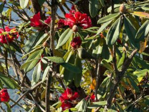 จากการรายงานของเจ้าหน้าที่อุทยานฯ พบว่าสภาพอากาศเช้านี้เปิดโปร่งคุณภาพอากาศดีเยี่ยม ทัศนียภาพบริเวณจุดชมวิววิวกิ่วแม่ปานปรากฏทะเลหมอกลอยละล่องอย่างสวยงาม และที่สร้างความตื่นตาตื่นใจที่สุดคือ ดอกกุหลาบพันปี (Rhododendron) หรือที่ชาวบ้านเรียกว่า “คำแดง” เริ่มคลี่กลีบสีแดงสดใสตัดกับสีเขียวของผืนป่ากึ่งอัลไพน์ เป็นสัญญาณการเริ่มต้นของช่วงเวลาที่สวยที่สุดของกิ่วแม่ปาน