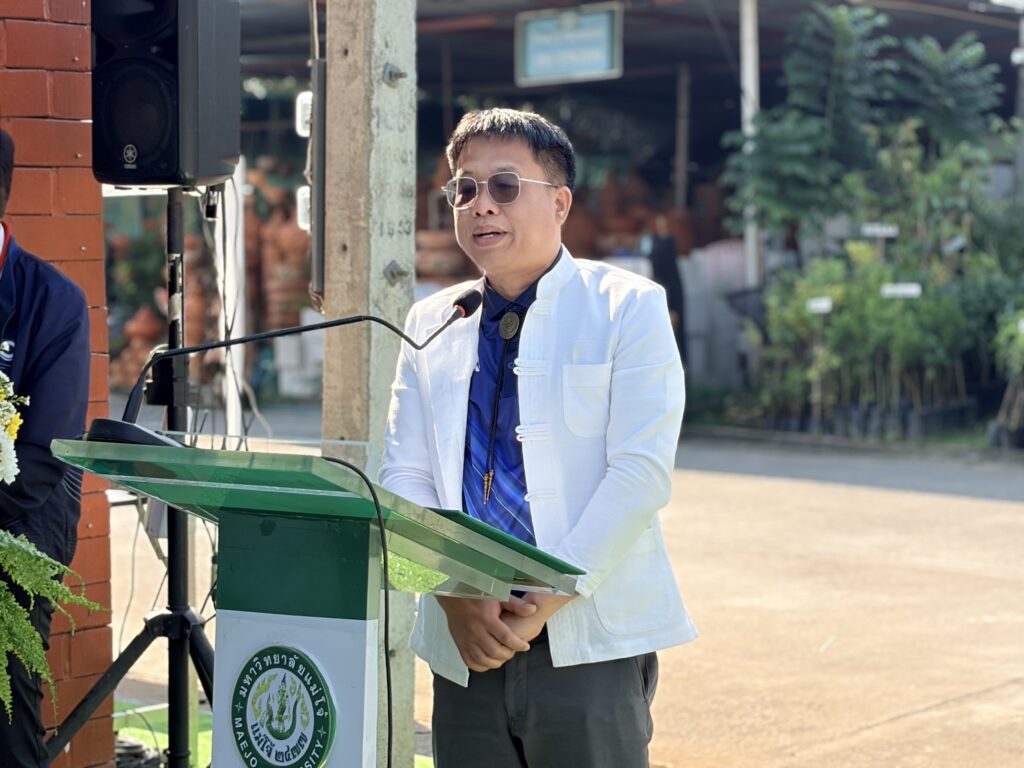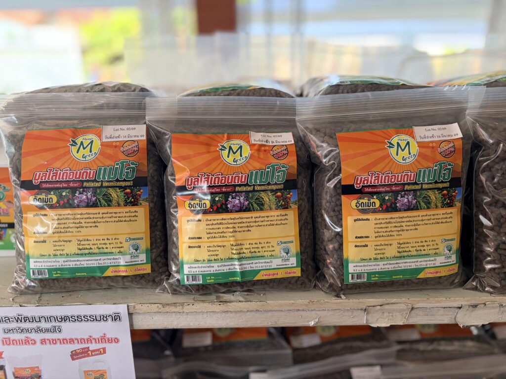 รองอธิการบดีมหาวิทยาลัยแม่โจ้ กล่าวว่า แนวคิดสำคัญของมหาวิทยาลัย คือการทำให้เกษตรกรสามารถเข้าถึงปัจจัยการผลิตที่มีคุณภาพในราคาที่เหมาะสม โดยอาศัยองค์ความรู้และงานวิจัยของมหาวิทยาลัยมาพัฒนาคุณภาพชีวิตของเกษตรกรและประชาชน การเปิดร้านแห่งนี้จึงเป็นอีกช่องทางในการนำผลิตภัณฑ์คุณภาพส่งตรงถึงผู้บริโภค โดยเฉพาะ “ดินเด้งดึ๋ง” ซึ่งเป็นดินอินทรีย์ 100% ไม่มีสารปนเปื้อน บรรจุขนาด 20 กิโลกรัม ราคา 199 บาท ถือเป็นราคาที่เกษตรกรเข้าถึงได้