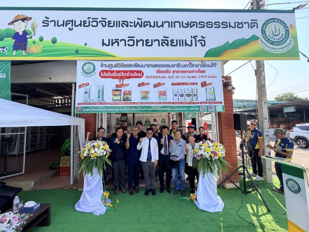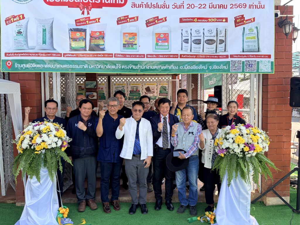สำหรับร้านค้าศูนย์วิจัยและพัฒนาเกษตรธรรมชาติ มหาวิทยาลัยแม่โจ้ สาขาตลาดคำเที่ยง เปิดจำหน่ายสินค้าเกษตรอินทรีย์ ปัจจัยการผลิต และสินค้าคุณภาพในราคาจับต้องได้ พร้อมจัดโปรโมชั่นพิเศษ “ซื้อ 1 แถม 1” ระหว่างวันที่ 20–22 มีนาคม ภายใต้การกำกับดูแลของมหาวิทยาลัยแม่โจ้ เพื่ออำนวยความสะดวกให้ประชาชนสามารถเข้าถึงผลิตภัณฑ์ทางการเกษตรที่มีคุณภาพได้ง่ายและรวดเร็วมากยิ่งขึ้น.