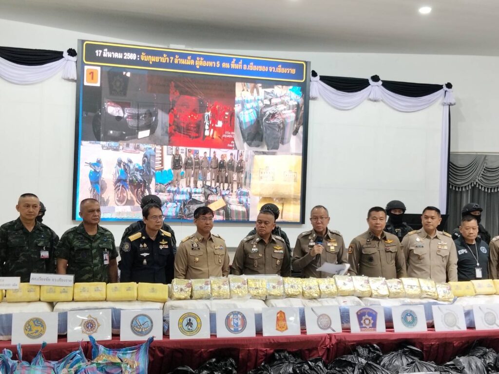 ​คดีแรก เกิดขึ้นเมื่อวันที่ 17 มีนาคม 2569 ที่อำเภอเชียงของ จังหวัดเชียงราย เจ้าหน้าที่ตั้งจุดตรวจพบรถจักรยานยนต์ 3 คันขับนำรถยนต์อเนกประสงค์เชฟโรเลต เมื่อเรียกตรวจรถยนต์คันดังกล่าวกลับเร่งเครื่องหลบหนีและนำรถไปจอดทิ้งไว้ ตรวจสอบภายในรถพบยาบ้า 24 กระสอบ รวมประมาณ 7 ล้านเม็ด สอบสวนผู้ต้องหาที่ขี่รถจักรยานยนต์นำทางสารภาพว่าลำเลียงยามาจากชายฝั่งแม่น้ำโขงเพื่อไปส่งที่อำเภอภูซาง จังหวัดพะเยา