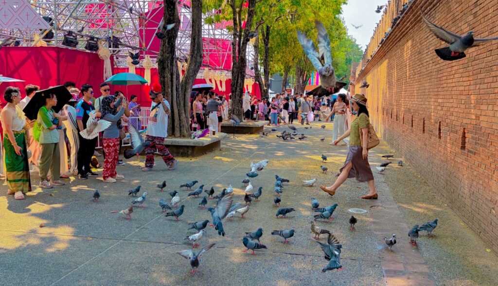 ข่าวสังคม » แลนด์มาร์คยอดฮิต‼️อย่าง “ประตูท่าแพ” ในเชียงใหม่ นอกจากกำแพงเมืองเก่าสีส้มอิฐที่เป็นฉากหลังยอดนิยมแล้ว อีกหนึ่ง “ดาราหน้ากล้อง” ที่ขาดไม่ได้เลยคือ ฝูงนกพิราบ 🐦