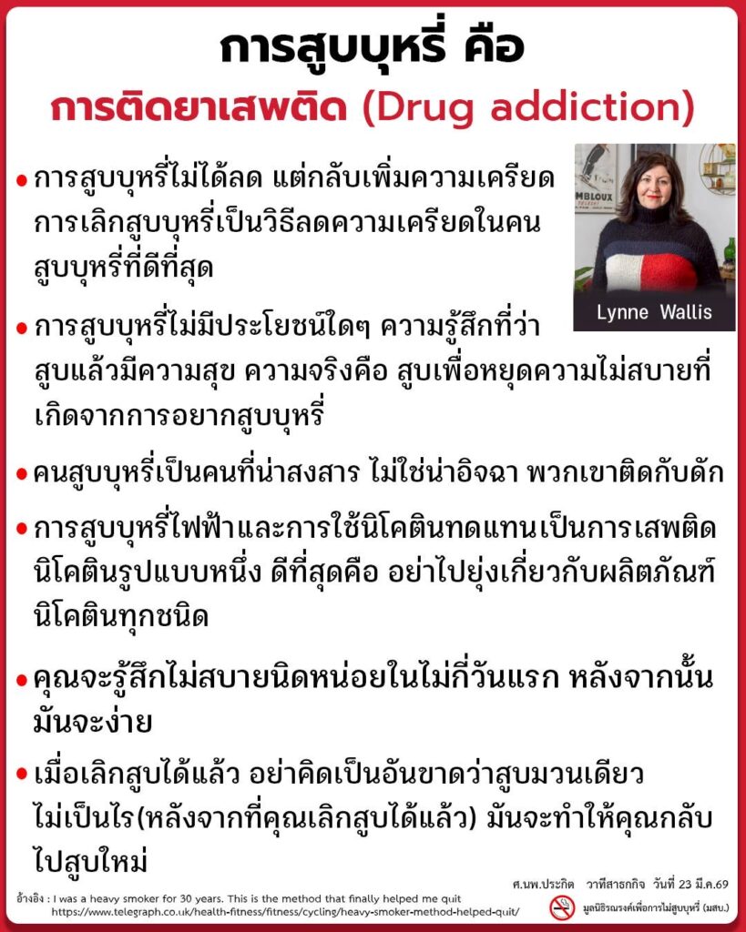 Lynne Wallis ได้สรุปบทเรียนที่ได้จากการเข้าคอร์สเลิกบุหรี่(อินโฟ)