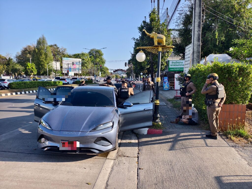 ขณะขบวนตรวจผ่านมาถึงบริเวณหน้าร้านไก่ย่างเขาสวนกวาง ใกล้กับแยกนิมมานเหมินทร์ บนถนนสมโภชเชียงใหม่ 720 ปี พ.ต.อ.มนัสชัย สังเกตเห็นรถยนต์เก๋งคันหนึ่งจอดอยู่ในลักษณะมีพิรุธและต้องสงสัย จึงตัดสินใจเข้าทำการตรวจสอบทันที