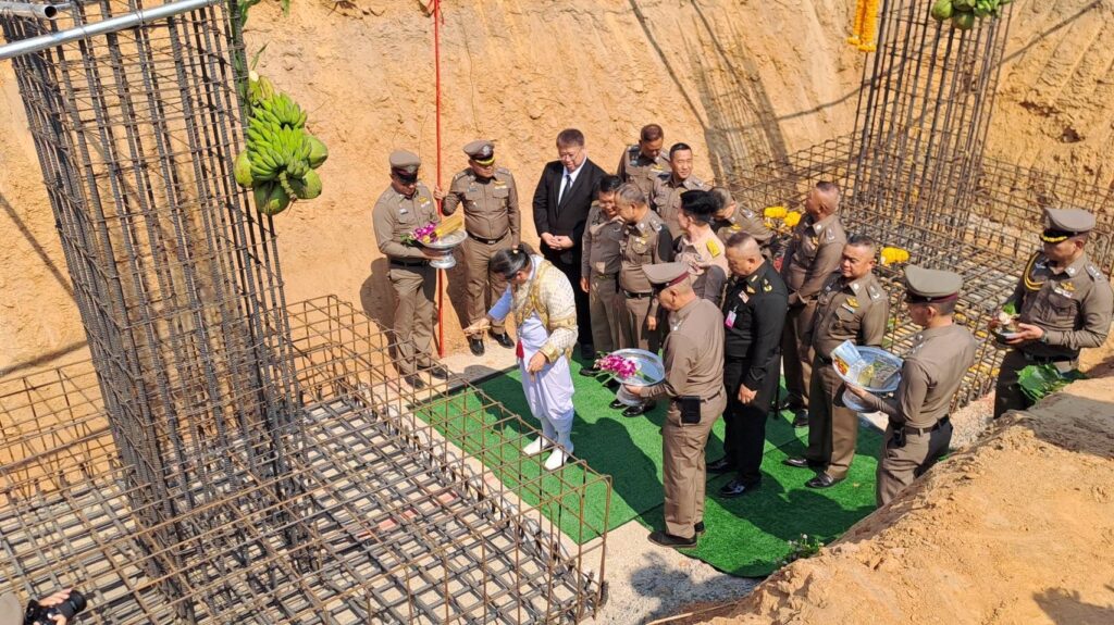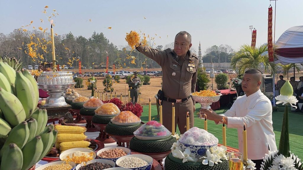 ตำรวจภูธรภาค 5 จัดพิธีบวงสรวงและลงเสาเอก ก่อสร้างอาคารที่ทำการแห่งใหม่ อ.สันทราย