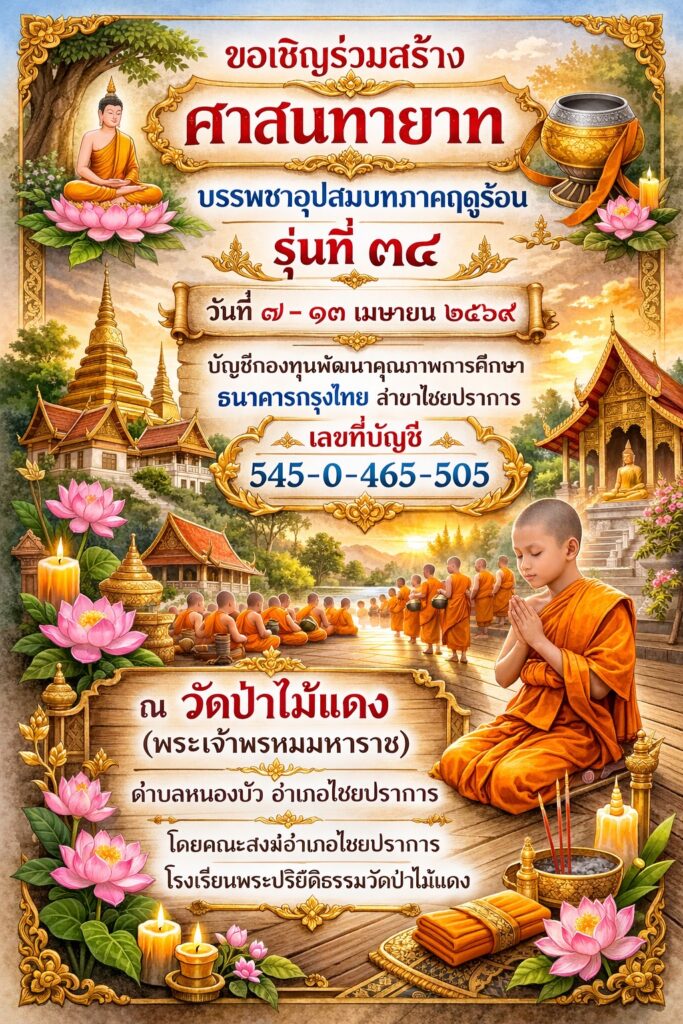 จังหวัดเชียงใหม่ ขอเชิญพุทธศาสนิกชนและประชาชนทั่วไป ร่วมพิธีบวงสรวงและเจริญพระพุทธมนต์บท “อุปปาตะสันติ มหาสันติงหลวง” ซึ่งกำหนดจัดขึ้นเป็นครั้งแรกในจังหวัดเชียงใหม่ ในวันจันทร์ที่ 6 เมษายน 2569 เนื่องใน วันจักรี ณ วัดเชียงยืน ตำบลศรีภูมิ อำเภอเมืองเชียงใหม่ เพื่อความเป็นสิริมงคลและความร่มเย็นเป็นสุขแก่ครอบครัวและบ้านเมือง