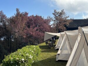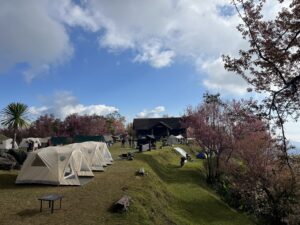 นักท่องเที่ยวสามารถนำเต็นท์มาเองเสียค่ากางเต็นท์เพียง 30 บาทต่อคนต่อคืน หรือใช้บริการเต็นท์ของอุทยานแห่งชาติดอยผ้าห่มปก มีบริการในราคาเริ่มต้น 225 บาท สำหรับเต็นท์ขนาด 2 คน พร้อมอุปกรณ์เครื่องนอนให้เช่าในราคาเริ่มต้นที่ 30 บาทต่อชิ้นต่อคืน
